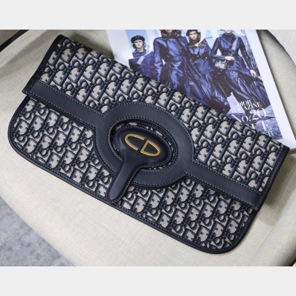 Réplicas Dior Oblique Saddle Chain Billet Blue