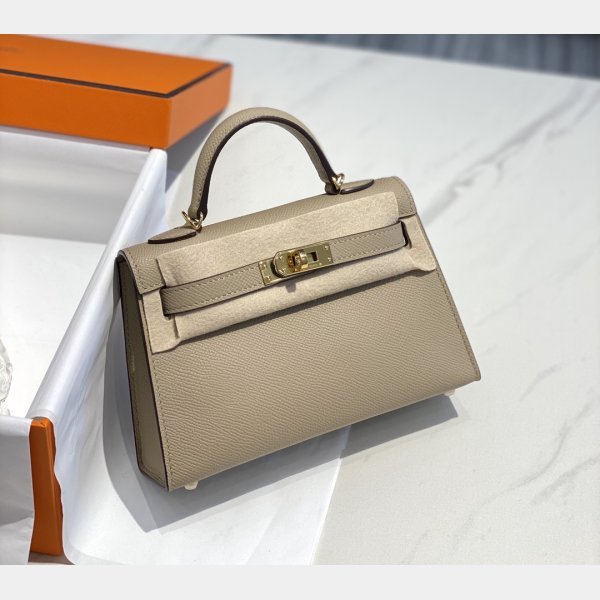 Réplicas Hermes Mini Kelly Epsom Leather Bolsas grises terrosas
