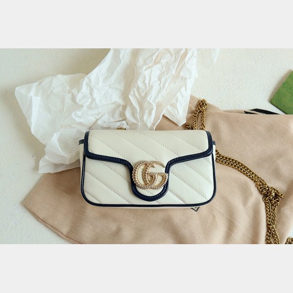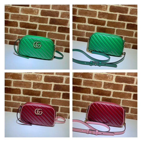Barato 547260 Gucci Chevron Leather GG Marmont Mini Top Many