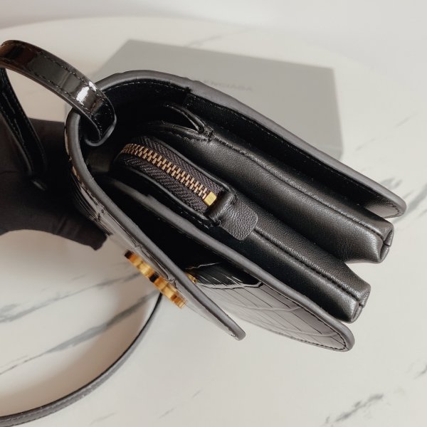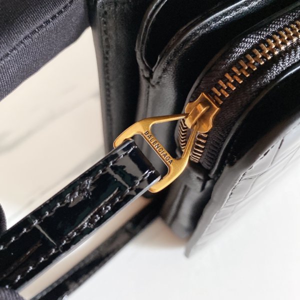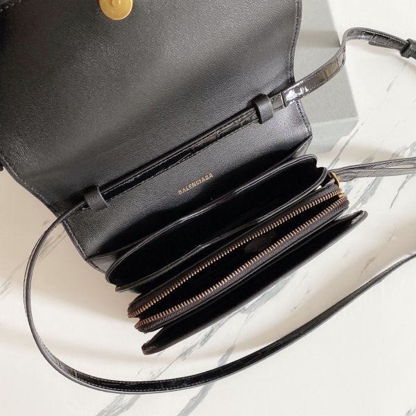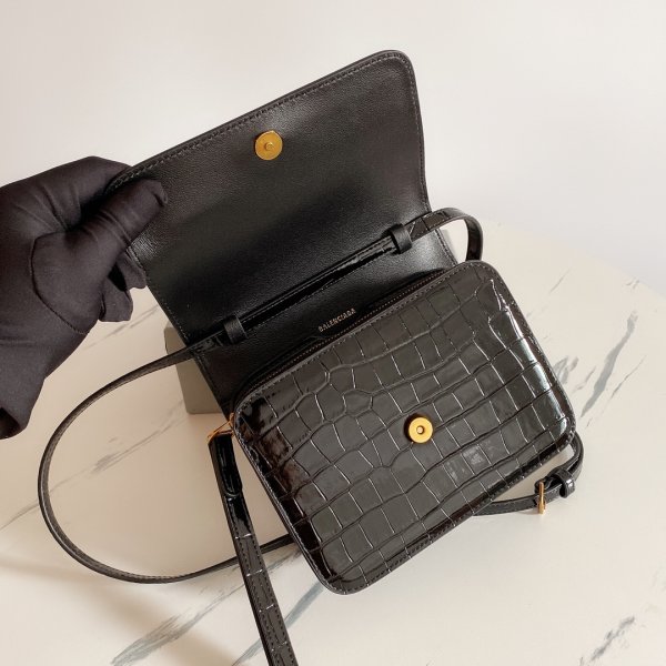 La última caja en relieve de cocodrilo de Balenciaga con bolsa diagonal de un hombro de piel de cordero con múltiples compartimentos