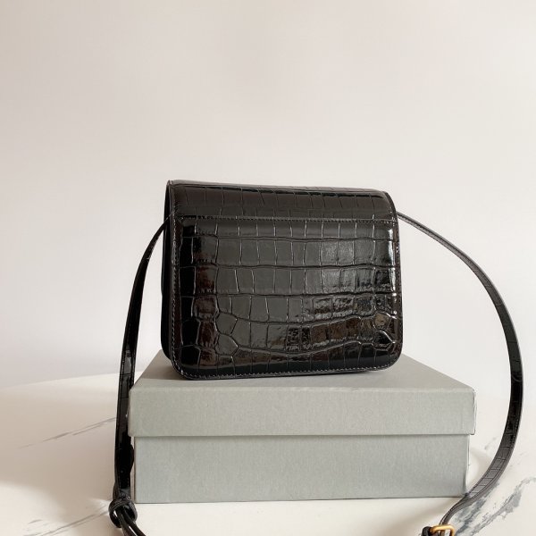 1 valoración en Bolso de caja en relieve de cocodrilo negro de hombro de Balenciaga