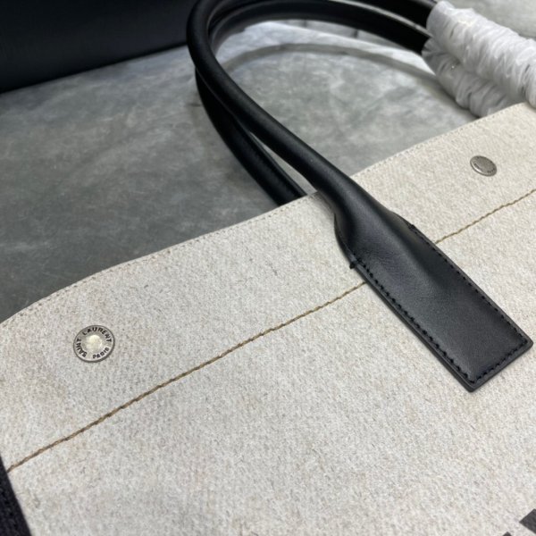 Noe Saint Laurent Tote con manijas tubulares, con un bolsillo interno y tres botones SNAP grabados en Saint Laurent en la parte superior. Material