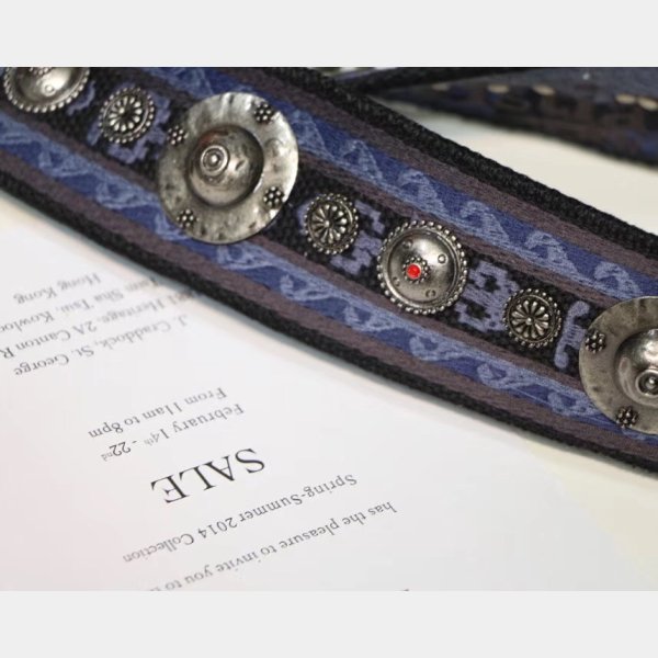 Esta correa elegante está hecha de lienzo que presenta emblemas de metal con tachuelas maravillosamente a través de la superficie y los broches de oro envejecidos. ¡Disfruta de la forma, la función y el estilo de esta correa única para el uso diario, de Christian Dior!