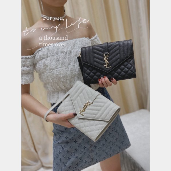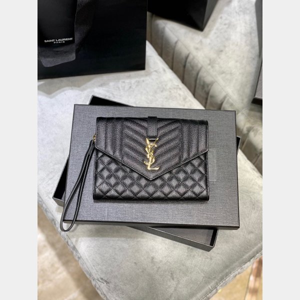 mongrope embrague con una aleta frontal, decorada con iniciales de metal ysl y chevron quilted sobrecargada, hardpitting
