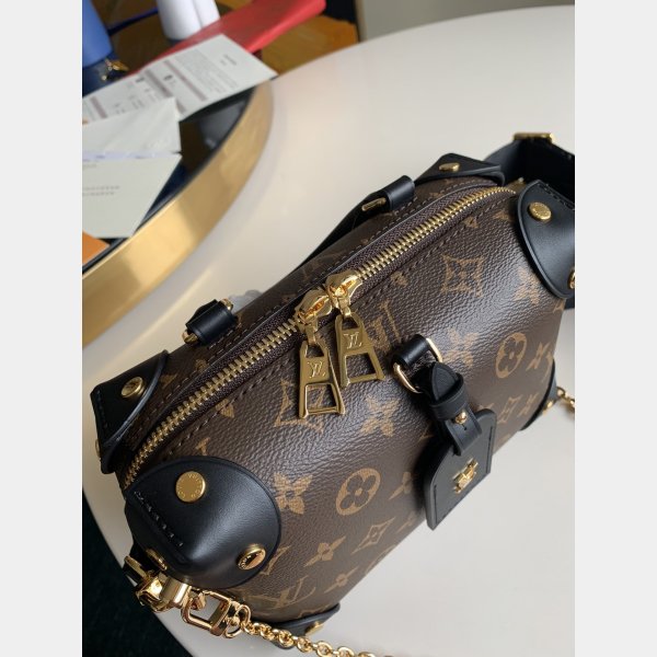 Petite Malle Souple handbolsas are made of Monogram canvas, integrated with rivet leather corners and leather brand, which conveys the inheritance of Louis Vuitton’s box making, with nautical style chain, Louis Vuitton Malletier embroidery y correa de hombro ancho desmontable. Dimensiones: 20.0 x 14.0 x 7.5 cm