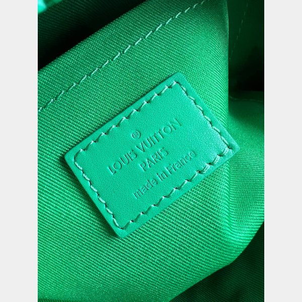 V stitching and embossed signature on the leather handle