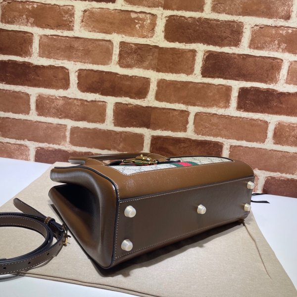 Beige y Ebony GG Supreme Canvas, un material con bajo impacto ambiental, con trimel de cuero marrón y detalle de la red roja