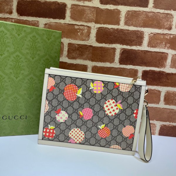 Beige y Ebony GG Supreme Canvas con impresión de manzana con bajo contenido ambiental