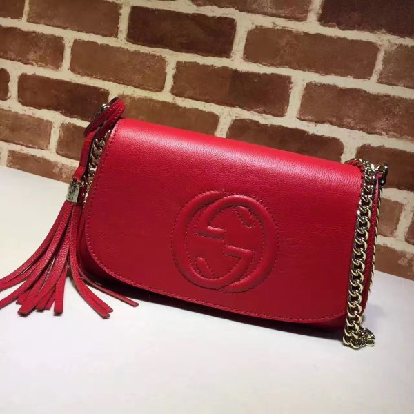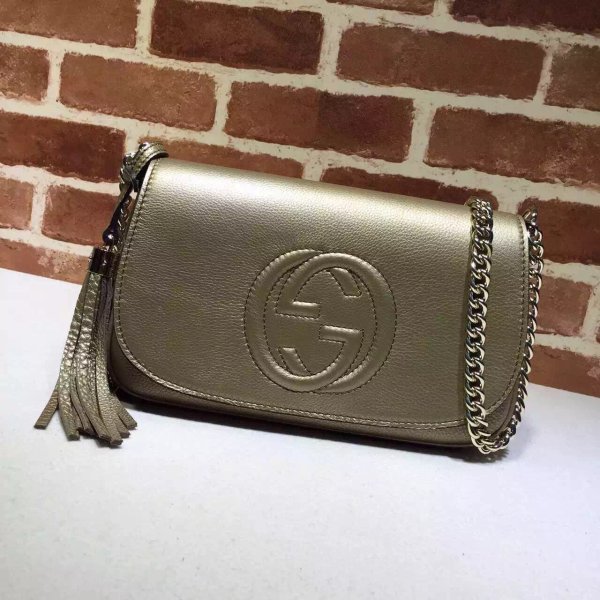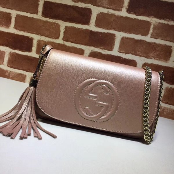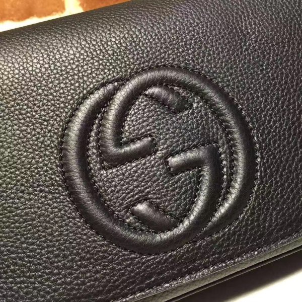 Gucci Soho Women’s Gg Chain 336752 Cruz de cuero negro
