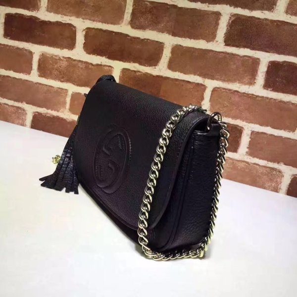gucci Black Leather Soho Small Disco bolsas